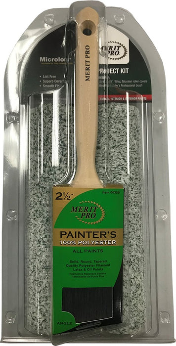 Premium quality project kit contains: 2, 9" x 3/8" Whizz Microlon roller covers and one Merit Pro Painter's Professional 2.5" angle sash brush (00350).