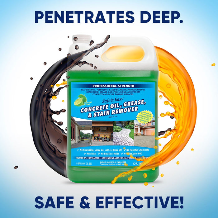Safe 'n Easy Concrete Oil, Grease, & Stain Remover is a fast and effective cleaner that goes deep to dissolve years of stubborn grease and motor oil. This product works from the inside out to bring the toughest oil and grease stains to the surface.