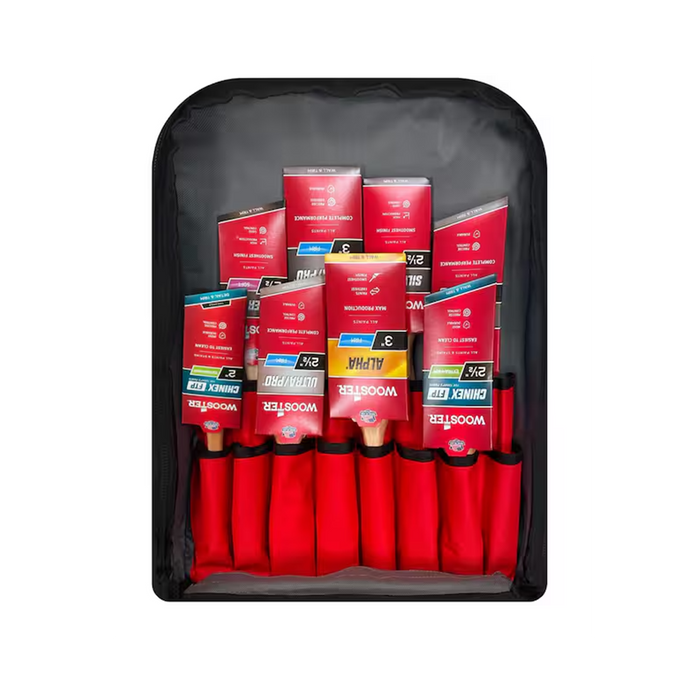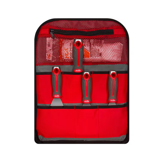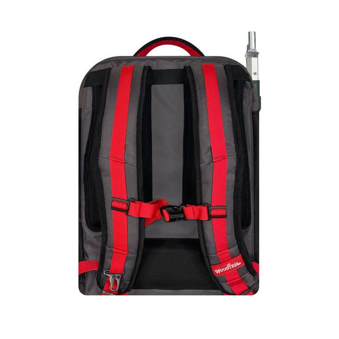 Wooster's painter's backpack (Note: applicators are sold separately) features multiple brush pockets, storage for roller frames and covers, and zippered compartments for prep tools.