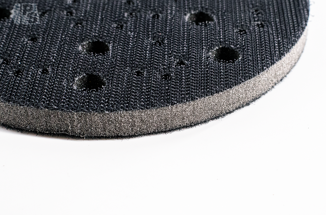 The 10 mm thick multi interface pad is used in combination with hook & loop sanding discs for sanding rounded surfaces and contours, with Mirka's net products. Using the multi interface pad will also produce a softer result. The multi Interface pad is placed between the backing pad and the sanding disc.