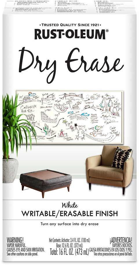 View full detailsRust-Oleum 241140 Qt White Dry Erase Brush On Kit