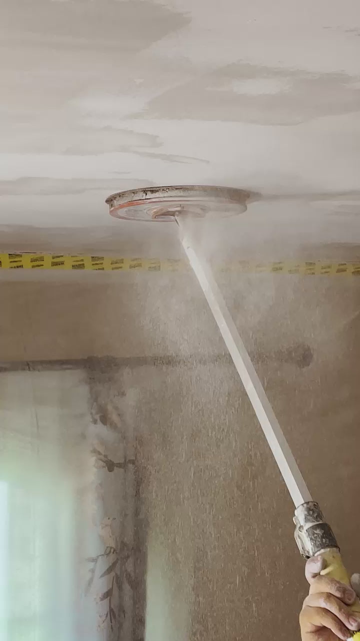 The ability to change directions quickly without having to lift the pad off the wall is a huge advantage over the conventional method of sanding drywall. The detachable foam disc forms to the wall, providing a smooth, even finish. Unlike the conventional sand pole, this foam disc wears evenly, greatly increasing the life of the tool. Both the foam pad and the sandpaper utilize hook-and-loop backing, making for easy replacement. Loop backed sandpaper firmly attaches to the foam disc, preventing debris from collecting behind the sandpaper, and eliminating a major cause of streaking.