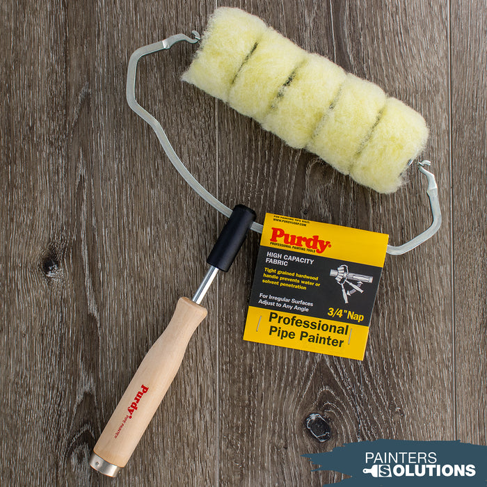 Five individual covers mounted on a heavy-duty 3/8" spring to bend around pipes, cylinders and columns. Wood handle adjusts to different angles.