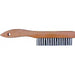 00402 4 x 16 row Shoe Handle Wire Brush is ideal for a variety of painting projects. Old or peeling paint doesn't stand a chance with this wire brush. This pocket-sized wire brush packs a punch. The brush features durable wire-bristles and a wooden handle molded to fit your grip. Get the job done right with this wire brush!